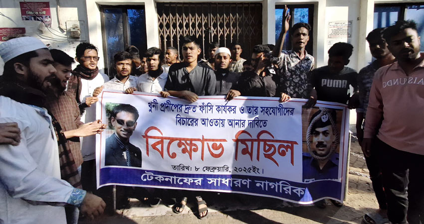 সেনাবাহিনীর অবসরপ্রাপ্ত মেজর রাশেদ মোহাম্মদ সিনহা হত্যাকাণ্ডে ফাঁসির দণ্ডপ্রাপ্ত আসামি সাবেক ওসি প্রদীপ কুমার দাসের দ্রুত ফাঁসি কার্যকর ও তার সহযোগীদের বিচারের আওতায় আনার দাবিতে বিক্ষোভ মিছিল করেছে কক্সবাজারের টেকনাফের সাধারণ নাগরিক ও বৈষম্য বিরোধী ছাত্র আন্দোলন।